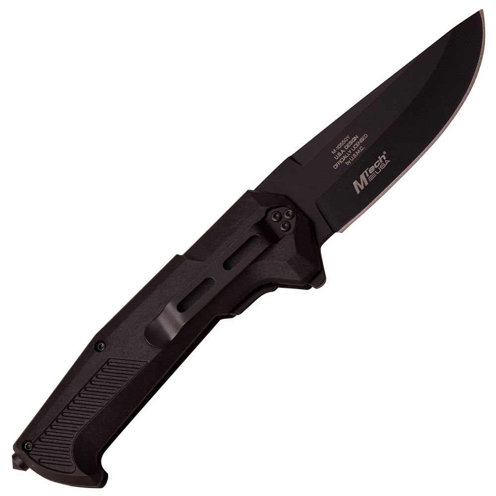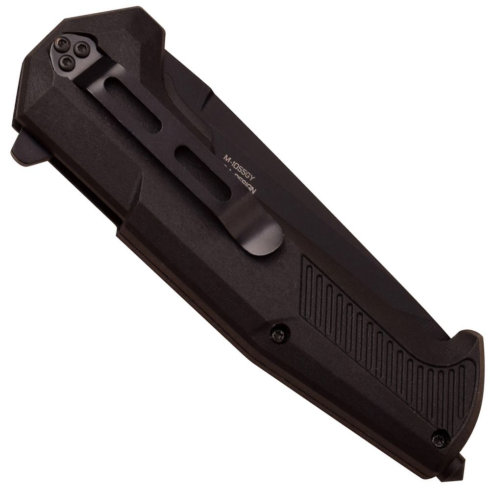 Manual Folding Knife3.25" 3mm Thick Blade, Stainless SteelBlack BladeBlack Nylon Fiber Handle, Grey & Black 2 Tone Usmc InsertIncludes Black Pocket Clip, Carbide Tip Glass Breaker.