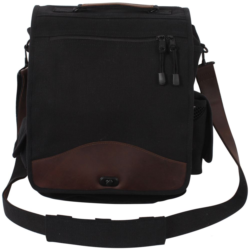 Vint Canvas M-51 Engineers Leather Bag is made with heavy canvas which makes it sturdy, strong and durable. The bag in is perfect with accents in lathers. It looks stylish and trendy. It is much appreciated for its design with antique brass hardware. The bag measures 12” X 14” X 5 ¾”. The bag is perfect with two large compartments, one for laptop and the other for documents. It has small pouches, compartments, pen holders and cell phone pouch. The front flap of the bag is made from real leather which makes it more attractive. The top handle and one side of the shoulder strap have reaL leather, as well.