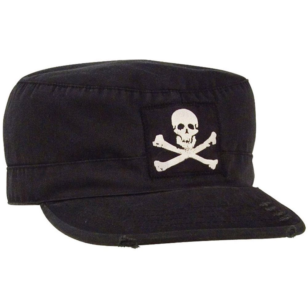 This cap is in black color and it is constructed with 55% cotton and 45% polyester material. This military style cap is made from prewashed fabric in order to give a patrol cap look. This black cap comes with a white colored Jolly Roger symbol on the front side of it (a skull with cross bones). These caps have several sizes that may fit everyone- XSmall, Small, Medium, Large and XLarge. You can place an order for a cap which matches your head well. This cap is designed to last for a longer time. Also, these caps are available at extremely cheap prices.