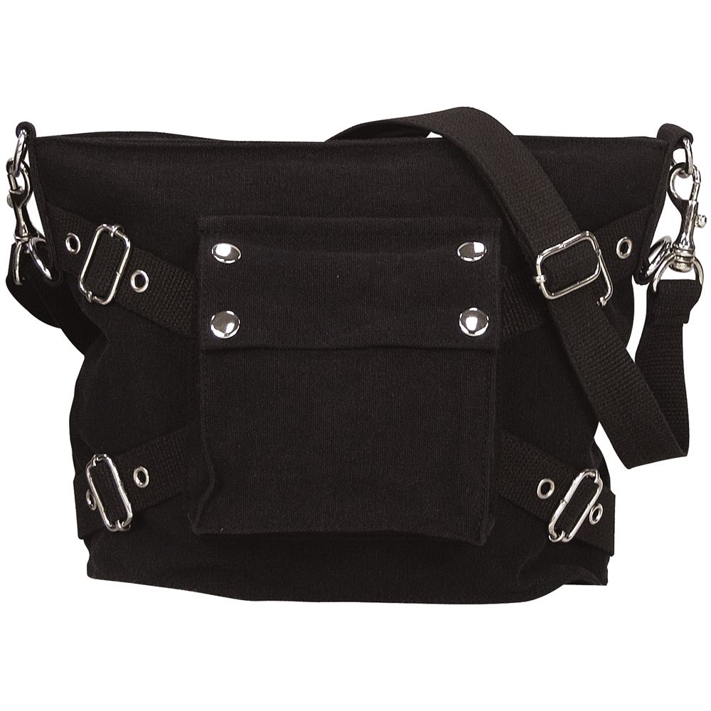 It is made up of 12 ounce stonewashed canvas material. This bag is designed on the basis of classic vintage style. The main compartment of this bag comes with a zipper closure. This shoulder bag comes in black color. It features a shoulder strap as well as a front packet with snap closure. The shoulder strap can be either adjusted or detached as per your wish. It also has two black colored metal buckle belts with loops which comes through the back portion of the bag and stretches into the front. It is lighter and smaller than the paratrooper bags. It can be conveniently worn on your shoulder.
