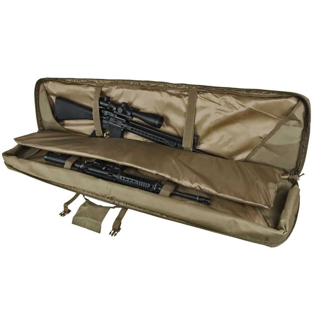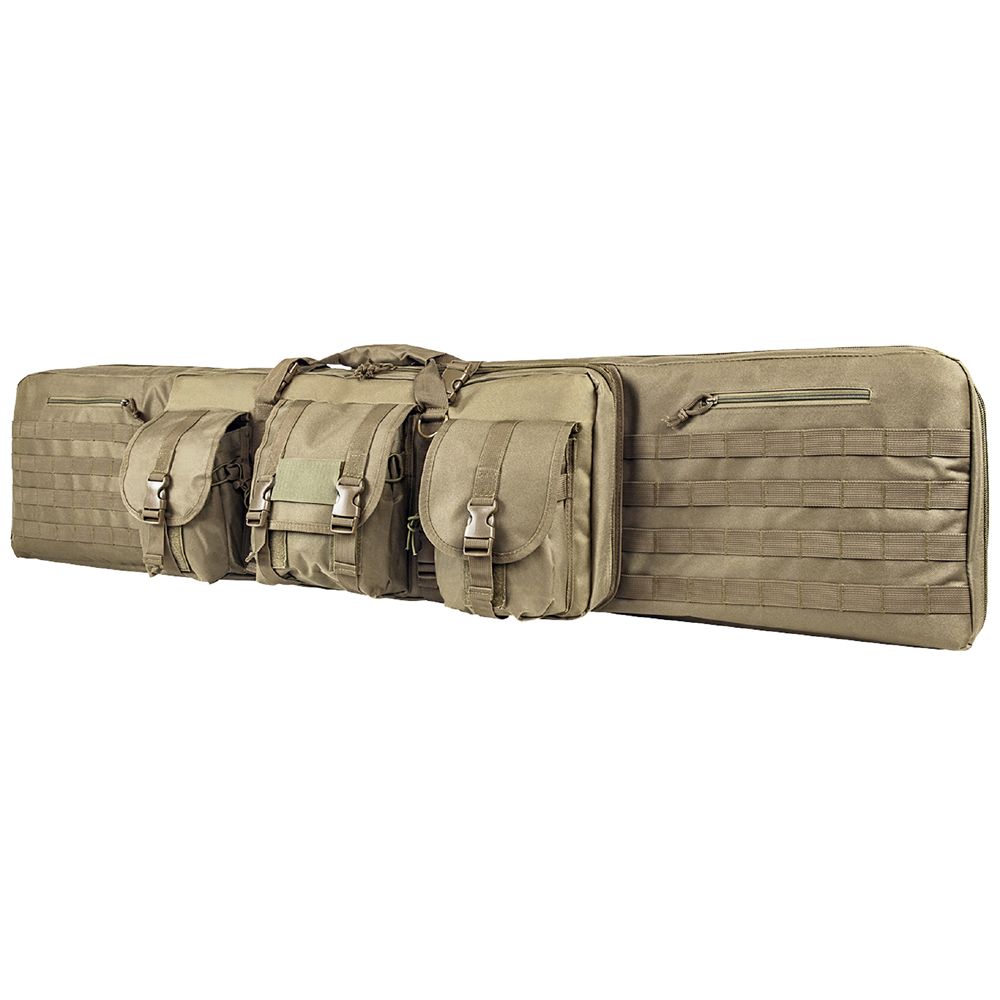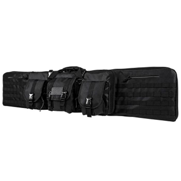 There is no shortage of space in the Vism by NcSTAR Rifle Case. This deluxe gun case measures an impressive 1.4 m (55 inches) in length and can secure up to two large-sized rifles. Three exterior pockets ensure that you can bring along spare mags, extra ammo, and other essential shooting equipment. The case is made of water-resistant PVC material and features MOLLE webbing and interior compression straps. The lightweight case can be carried with the heavy duty handles or the padded backpack straps.