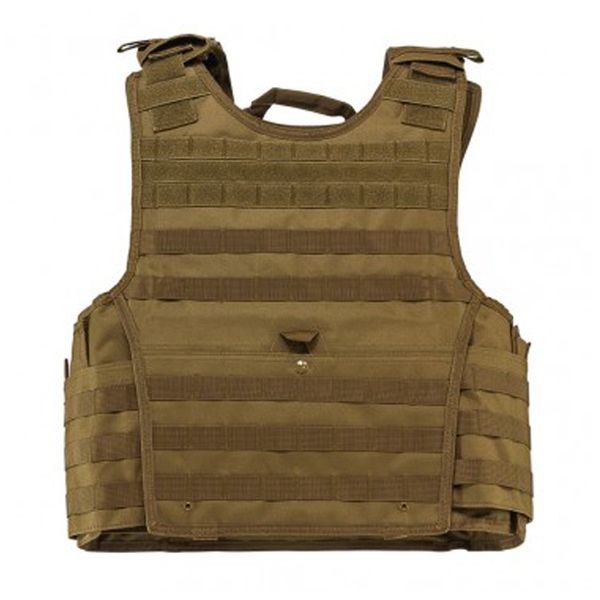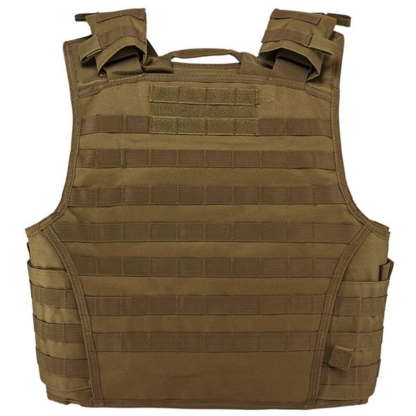 For superior protection on duty, choose the Vism by NcSTAR Expert Plate Carrier. This deluxe tactical vest is designed to hold 279.4 mm (11 in) X 355.6 mm (14 in) ballistic plates. It features MOLLE webbing on all sides, and can be easily customized for a wide variety of mission types. The adjustable shoulder straps feature quick connect buckles, hook and loop fasteners, and loops for communications cabling routing. The large-sized vest comes with an adjustable cummerbund, with a maximum length of 1.11 m (44 inch). This tan vest camouflages well in deserts and other dry environments.
