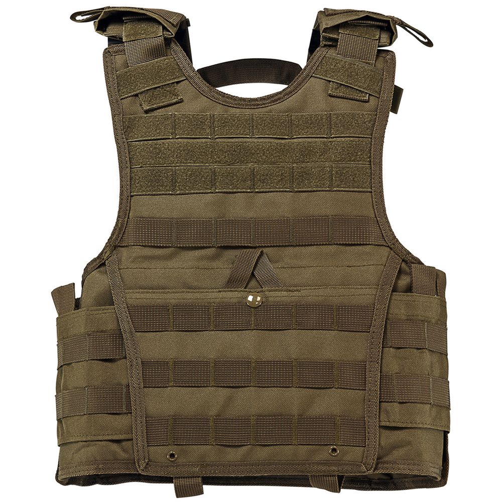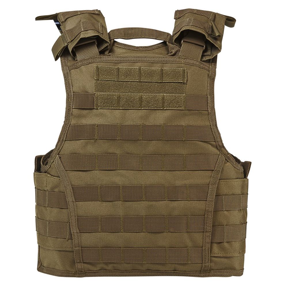 Get the upper hand during tactical operations with the Vism by NcSTAR Expert Plate Carrier. This deluxe tactical vest comes with MOLLE webbing on all sides, and can be easily customized for a wide variety of mission types. The adjustable shoulder straps feature quick connect buckles, hook and loop fasteners, and loops for communications cabling routing. The small-sized vest comes with an adjustable cummerbund, with a maximum length of 1.11 m (44 inch). The tan vest provides excellent camouflage in desert and urban environments.