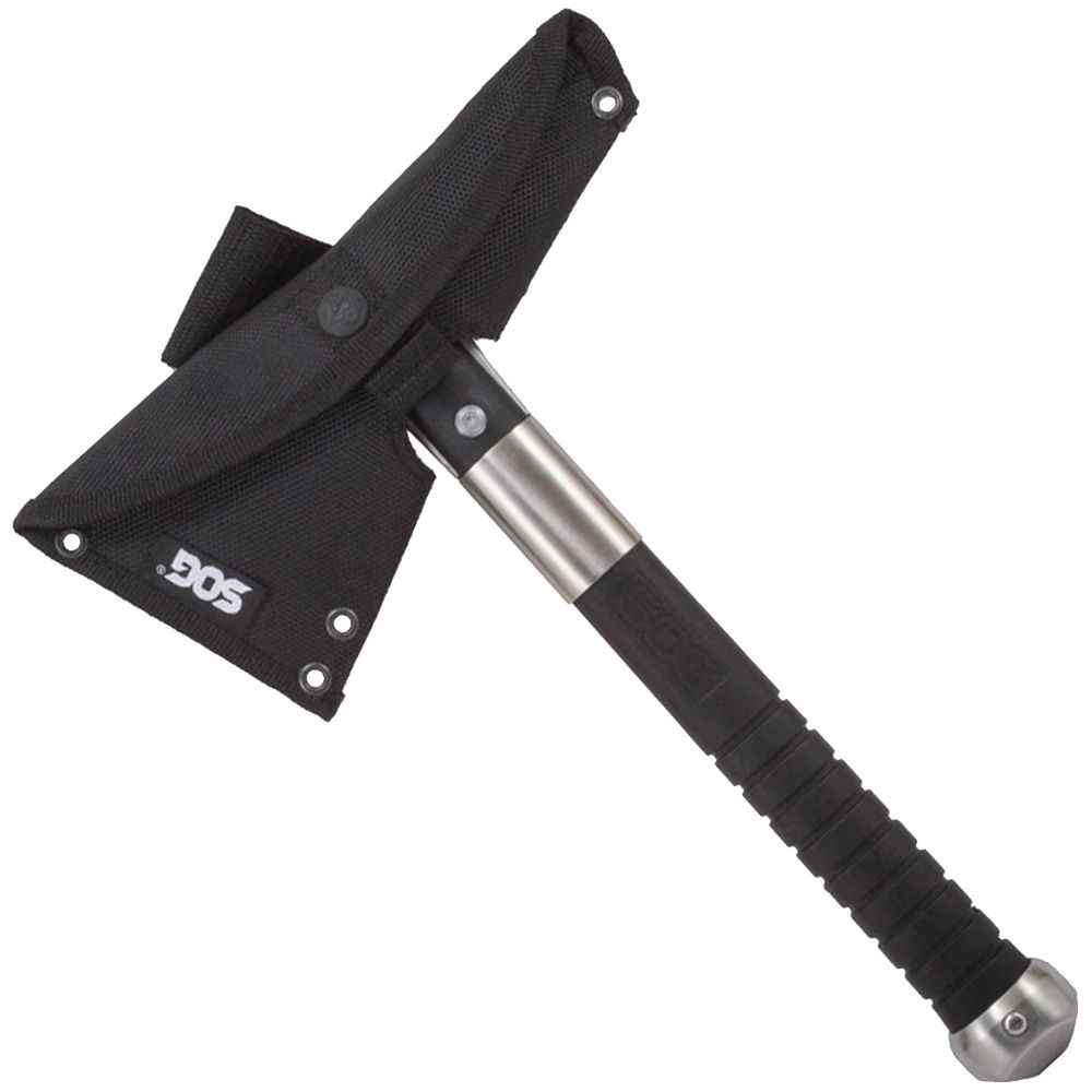 The original SOG Voodoo Hawk was designed as a combination of our tactical Tomahawk and FastHawk. This Voodoo Hawk Mini is smaller and lighter while featuring the same components; an extended cutting head, spike for piercing applications, compact glass-reinforced nylon handle, and metal pommel cap. The Voodoo Hawk Mini has everything the Voodoo Hawk has but in a smaller, compact form making it great for outdoor travelers like backpackers, hikers, hunters, or paddlers. The durable glass-reinforced nylon handle can take a beating while still remaining strong. Great tool for anything you can throw at it. Includes Nylon carry sheath.