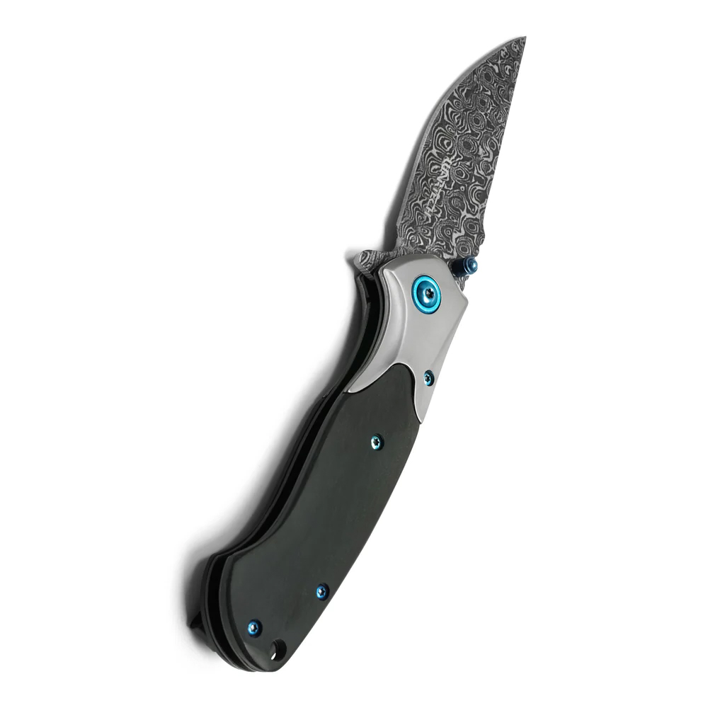 The Wartech 8" Wood Handle Folding Knife merges classic craftsmanship with modern functionality, making it a refined yet practical tool for everyday carry and outdoor adventures. Its etched Damascus steel blade showcases a striking pattern, adding a unique touch to its design.