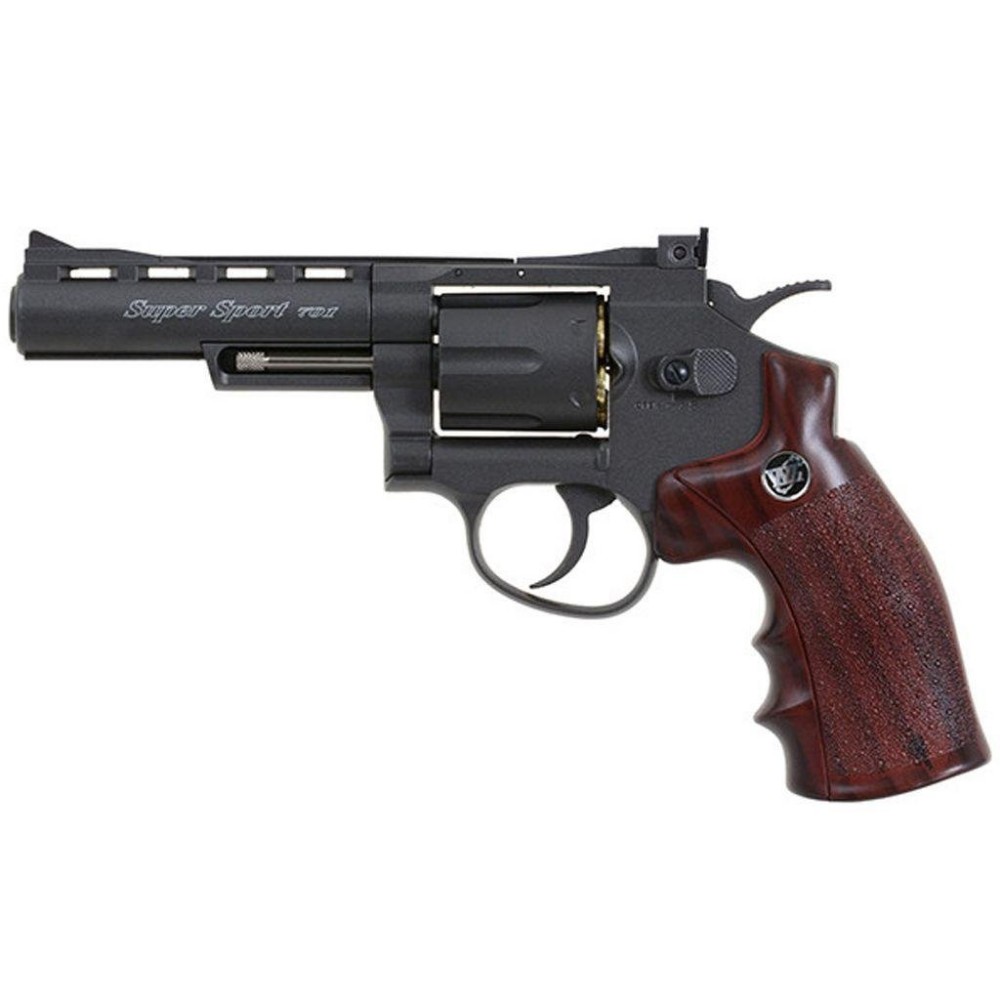 Type: airsoftPower: CO2Material: metalOverall Length: 790 mm (31.1 in)Weight: 863 g (1.9 lb)Action: revolverTrigger: single and doubleBarrel Length: 101.6 mm (4 in)Blowback: noneMagazine Capacity: 6 roundsAmmo Type: airsoft BBs 6mmMuzzle Velocity: 380 FPS