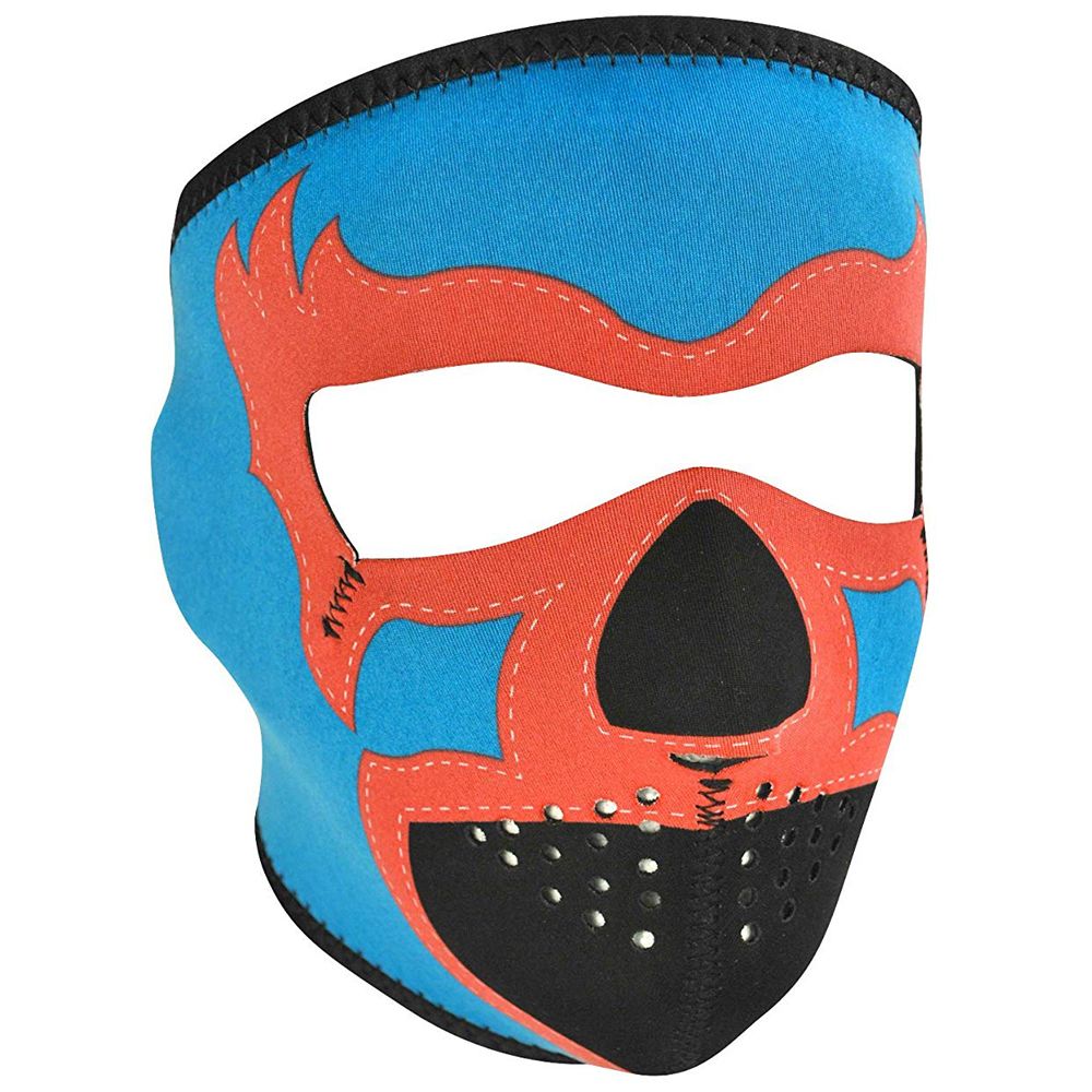 The ZANheadgear Neoprene Face Mask features full coverage of the face and ears with stretchy neoprene material that's water resistant and provides warmth. Its bound nylon edges offers added comfort and durability, while the hook and loop closure ensures great fit. Reversible to black material, one size fits most. Blue Lucha Libre design.