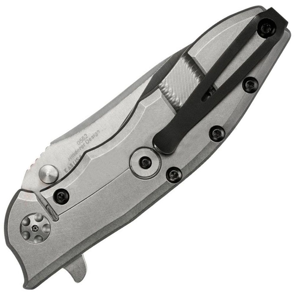 Zero Tolerance and Rick Hinderer teamed up to build the new 0562 with its exclusive Hinderer "slicer" grind. The S35VN steel blade with flat-ground “slicer” grind provides both slicing efficiency and a tough point. The knife deploys with a flipper and moves out of the handle on our smooth KVT ball-bearing opening system. A washer with caged ball bearings surrounds the pivot and makes opening the knife nearly frictionless; just pull back on the flipper and add a roll of the wrist and the 0562 is ready for action.