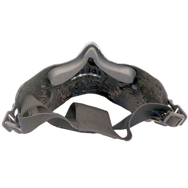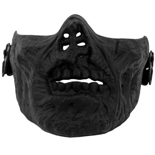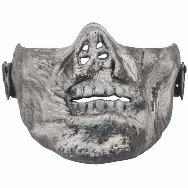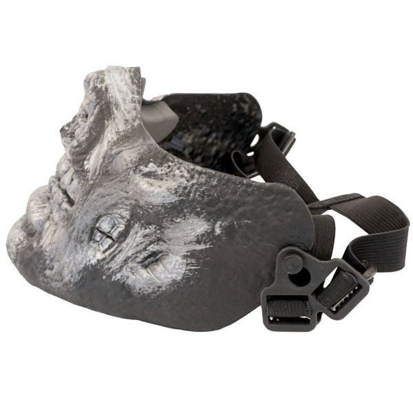 Half face mask in the form of a decaying zombie skull. Hard plastic with sturdy adjustable straps help to protect your lower face. Great for Halloween, cosplay or airsoft.